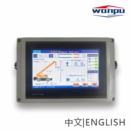The TLX68T Load Moment Indicator (Monitor) features an industrial-grade 8-inch LCD display. Compared to the TLX68, the only change is the display type—the TLX68T utilizes a touchscreen. Both models share an aluminum alloy housing, offering lightweight construction and moderate dimensions. It integrates main control functions with multiple signal input and output channels, enabling direct reading of sensor data and outputting stop signals. Its high integration reduces the number of system components, enabling more convenient and rapid installation.
