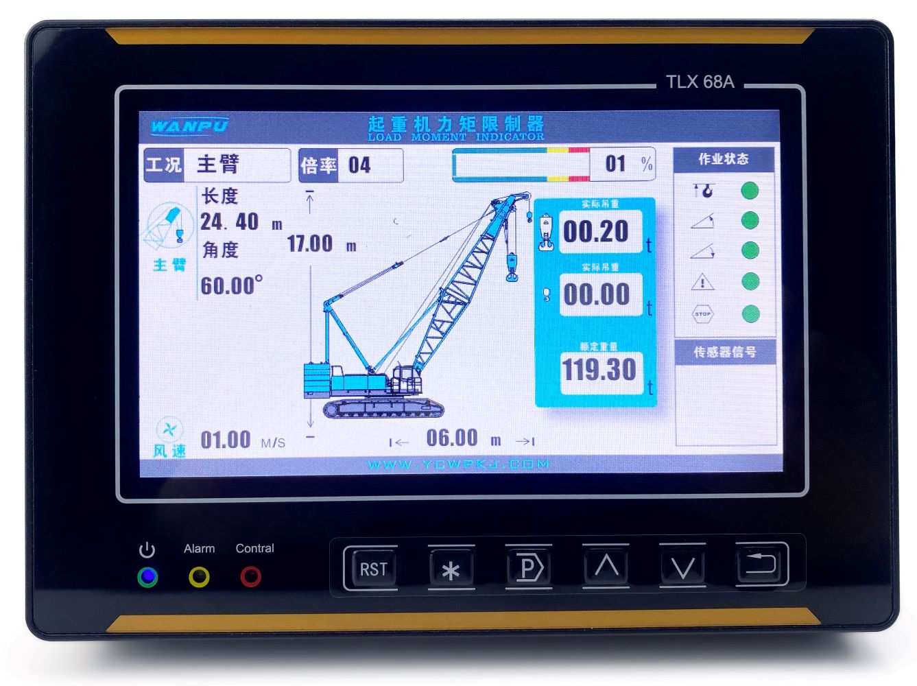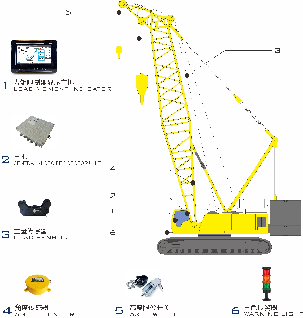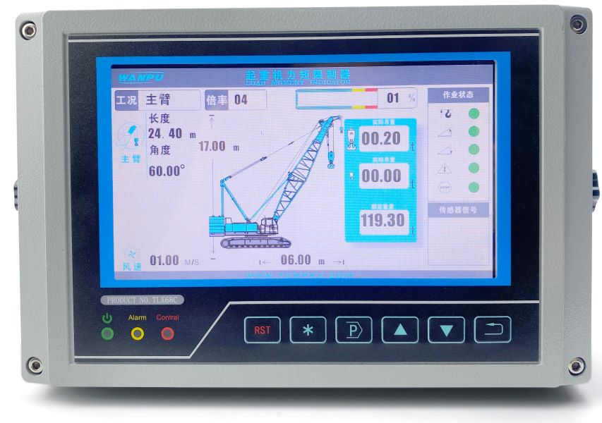 A crawler crane is essential equipment in heavy lifting and construction, renowned for its powerful lifting capacity and unique advantages. Ensuring the crane's safety during operation is particularly important, and the crawler-type load moment indicator effectively addresses this concern system can monitor the working parameters and status of the crane in real time by configuring various monitoring sensors and integrating them with a display unit. It outputs warning and stop signals, significantly assisting operators and managers in operating the crane safely and preventing accidents such as overloads and tilting.